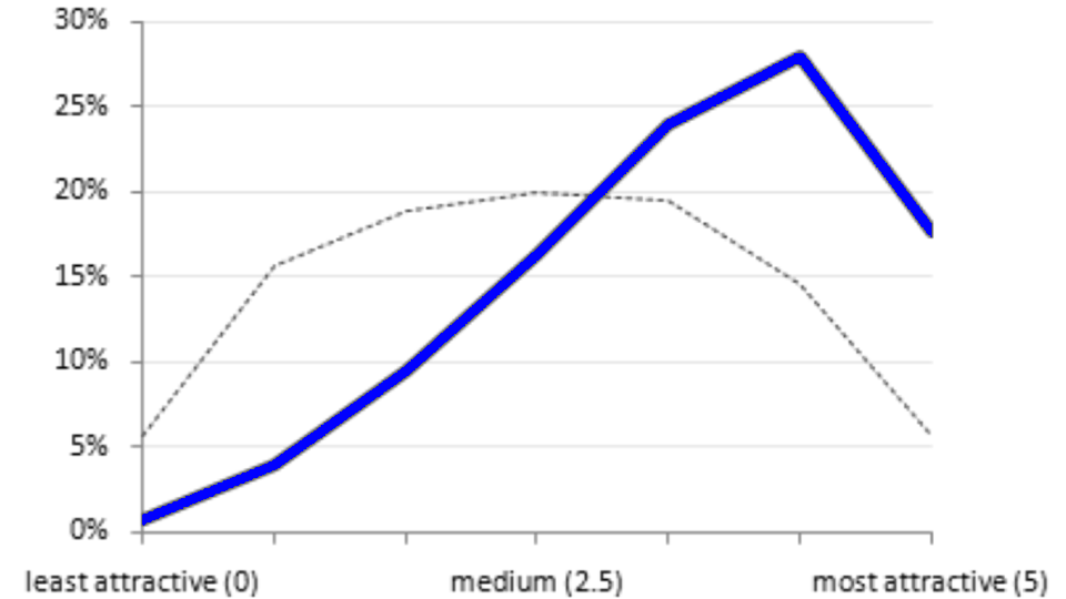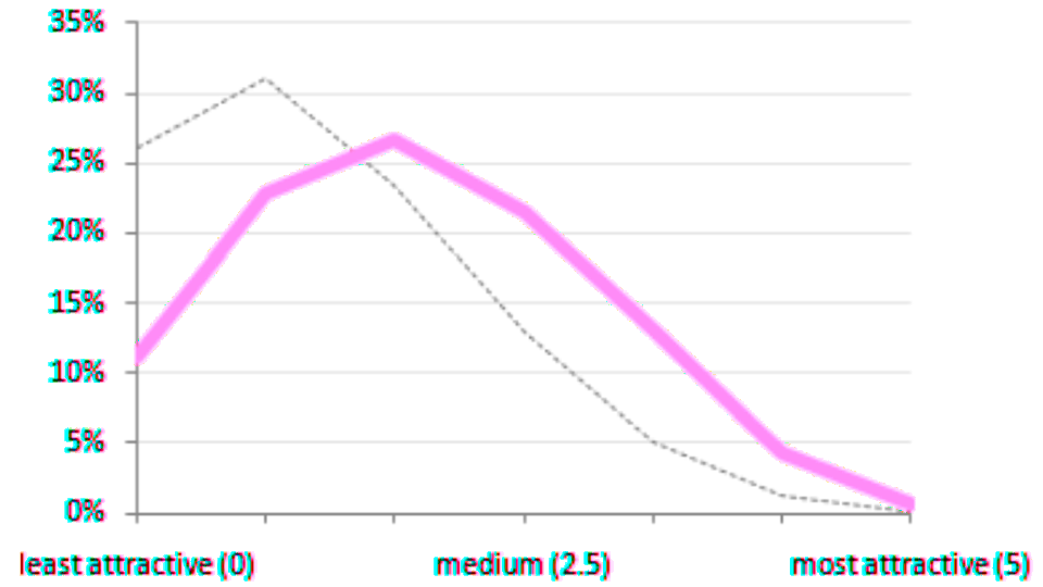 we can see, men rated by women as a 3 or 4 (on the traditional 1 to 10